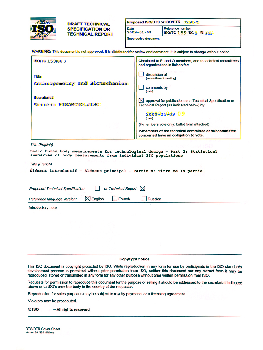 Norma ISO/TC 159/S3 Anthropometry and Biomechanics