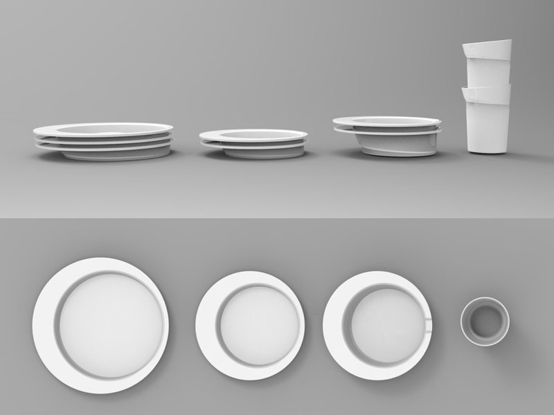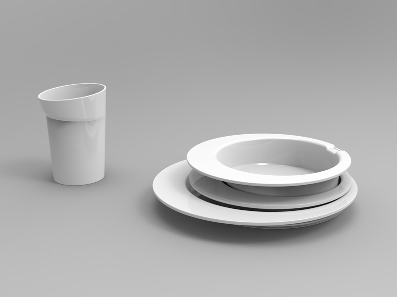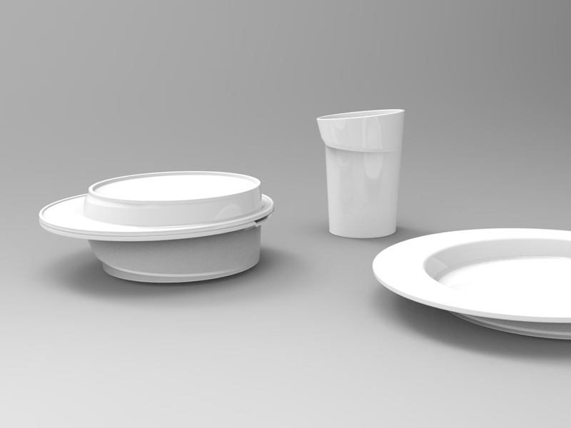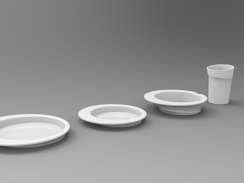 „Codzienna" to zestaw porcelanowych naczyń stołowych codziennego użytku. W komplecie: kubek oraz talerze mały, głęboki i duży. Założeniem tego projektu jest poprawa komfortu użytkowania. Uwzględnia on fizyczne ograniczenia seniorów związane z przyjmowaniem posiłków, lecz adresowany jest do szerszej grupy odbiorców. Problemy z chwytem, pełnym zakresem ruchu stawów czy ogólne osłabienie to niektóre z przypadłości osób starszych. Na ich podstawie powstały założenia projektowe takie jak: wyważenie ciężaru naczyń, wygodny chwyt, łatwość przenoszenia, możliwość łatwego jedzenia za pomocą jednego sztućca. W powstałym projekcie kubek w dolnej części ma podwójną ściankę zapewniającą termoizolację dłoni bez pomocy ucha. Brzeg kubka został ścięty pod kątem, tak aby można było z niego pić bez przechylania głowy do tyłu. Dno głębokiego talerza zostało podniesione, tak aby zupa spływała na jedną stronę i łatwiej można ją było nabrać na łyżkę. Po głębszej stronie, na brzegu talerza, znajduje się niewielki ustnik. Umożliwia on wypicie płynnej części zupy. Wszystkie talerze mają skrzydło asymetrycznie przesunięte względem swojego środka. To rozwiązanie pozwala na zmniejszenie dystansu między użytkownikiem a talerzem (przy posiłku nie trzeba się mocno nachylać). Można także wygodnie chwycić talerz, tam gdzie skrzydło jest szersze. Środek talerzy został powiększony i pogłębiony, co zapobiega wydostawaniu się żywności poza talerz. Kąt pomiędzy bokiem a środkiem talerza daje oparcie przy nabieraniu jedzenia, można więc jeść używając jednego sztućca. Naczynia sztaplują się. Używając głębokiego i małego talerza można utworzyć „pojemnik z przykrywką" do przechowania w lodówce. Zestaw został wykonany z porcelany. Daje się łatwo myć, również w zmywarce. W projekcie wykorzystano naturalną strukturę porcelany, nie szkliwiąc jej w obrębie skrzydła i stopki talerzy, gdzie tworzy się przez to powierzchnia antypoślizgowa.