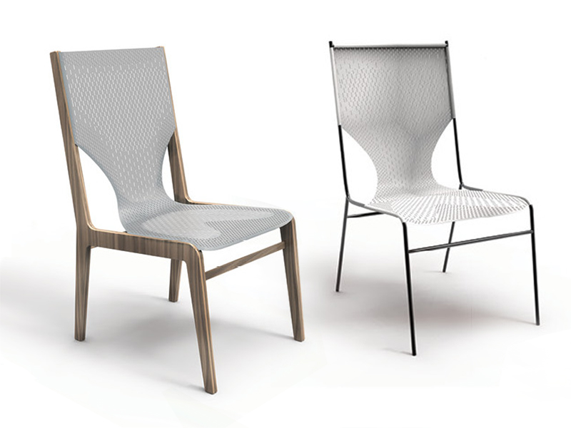 Do ukształtowania powierzchni siedziska, wykorzystana została tkanina nierozcią-gliwa, w której nacięcia o zmiennych długościach oraz dystansach pomiędzy nimi, tworzą powierzchnie elastyczną. W eksperymencie zostały sprawdzone naciski wywierane przez ciało człowieka, na poszczególne obszary płaszczyzny siedziska oraz podparcia. W konkretnych miejscach nacisków, zastosowany jest raster nacięć powodujący kontrolowane rozciąganie się materiału.Zastosowanie perforacji w materiale pozwala uzyskać odpowiednio wyprofilowaną powierzchnię w siedzisku, bez użycia sztywnej konstrukcji, za pomocą jednego, rozpiętego na ramie kawałka tkaniny.