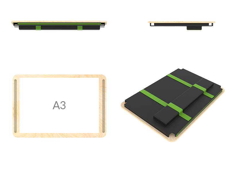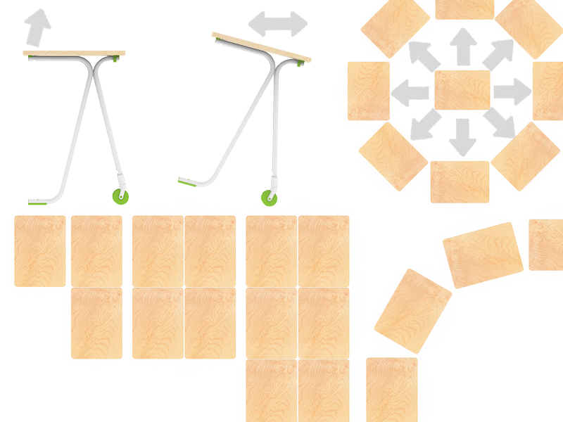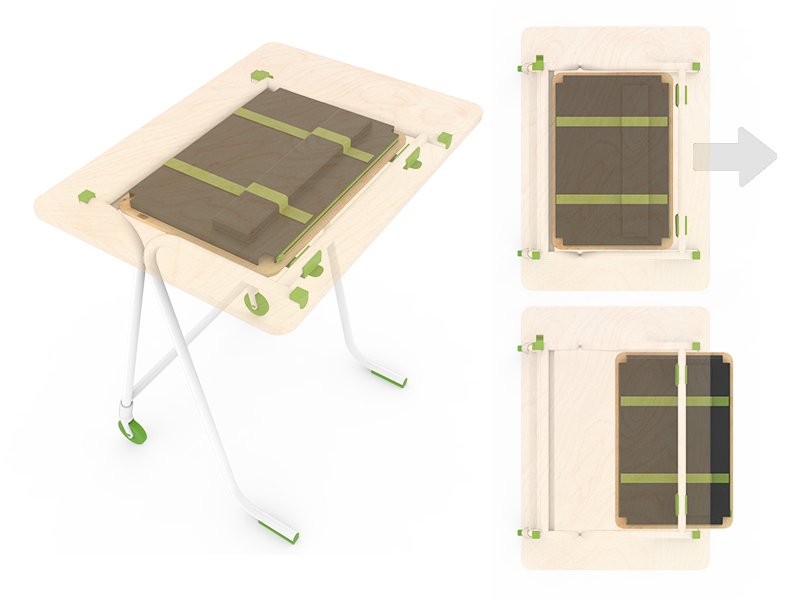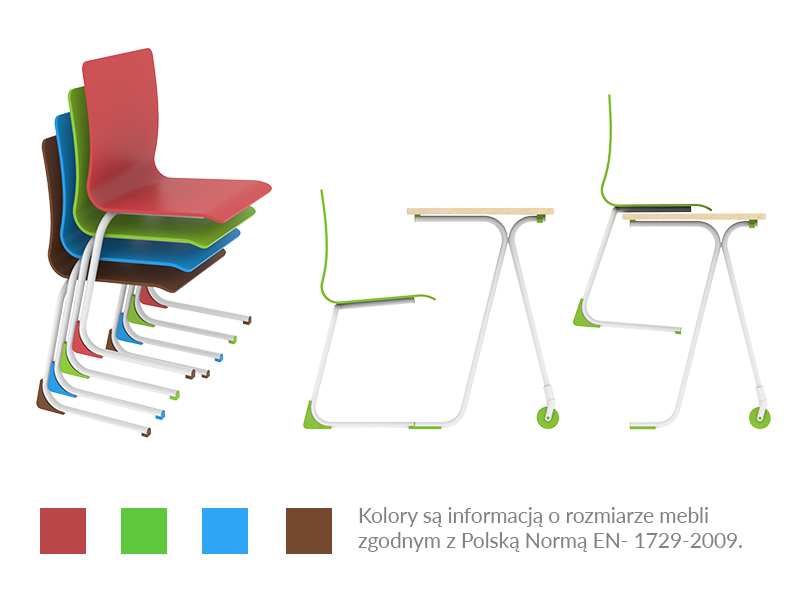 Dzięki zastosowaniu kółek oraz zaprojektowaniu odpowiedniej ramy biurka uzyskałem dużo wyższy poziom mobilności niż w innych produktach będących na polskim rynku. Dzięki temu nauczyciele mogą łatwiej adaptować przestrzeń do programu nauczania nie przeszkadzając innym w prowadzeniu lekcji. W krześle konstrukcja nóg umożliwia sztaplowanie, zaś siedzisko wykonane ze sklejki giętej spełnia normy przy jak najmniejszych kosztach produkcji. Podręczne stanowisko pracy składa się z drewnianego blatu pozwalającego na zmieszczenie kartki formatu A3 oraz kieszeni mogącej pomieścić niezbędne akcesoria.