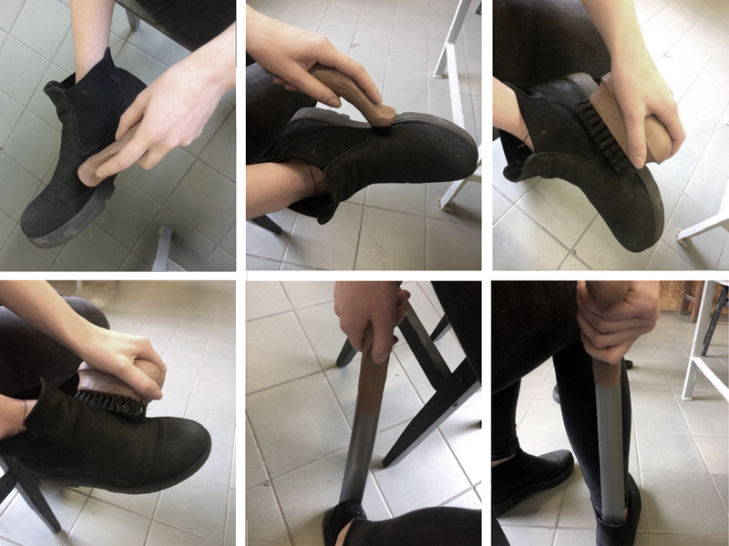 Ćwiczenie kształtowania uchwytów do zestawu przedmiotów do czyszczenia i zakładania obuwia przez osoby starsze.