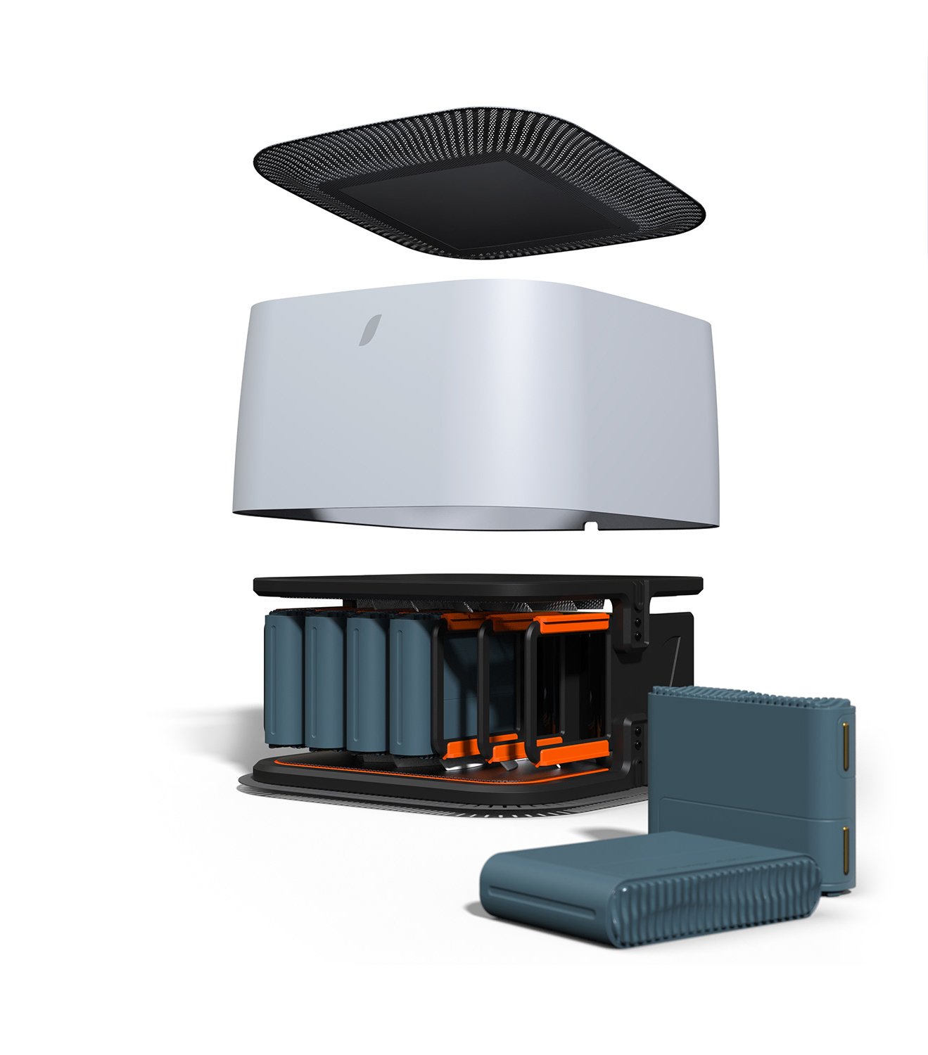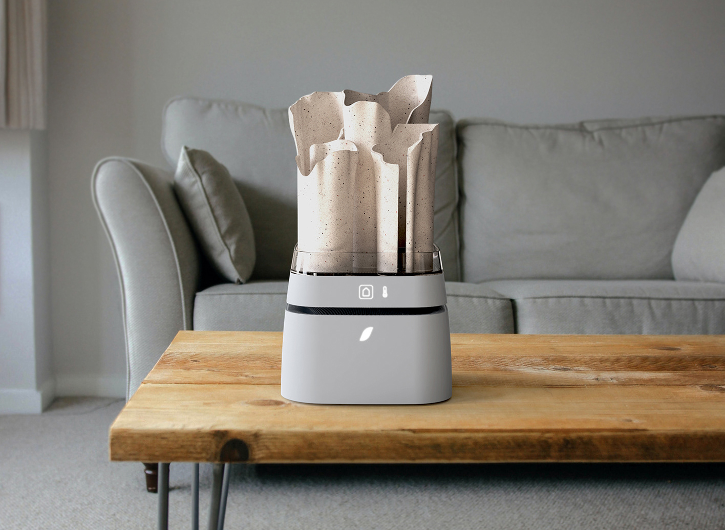 Modul’air to projekt systemu urządzeń, których główną funkcją jest oczyszczanie, ogrzewanie, chłodzenie i nawilżanie powietrza. Zestaw składa się z bazy z wymiennymi bateriami, uniwersalnego modułu AIR i pasywnych modułów z gliny przeznaczonych do wnętrz. Modularna budowa i towarzysząca produktom usługa, która umożliwia wymianę baterii, naprawę i rozbudowywanie systemu, sprawiają, że projekt wpisuje się w ideę zrównoważonego gospodarowania i ekonomii cyrkularnej.