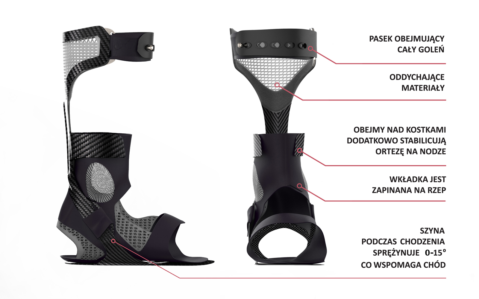 Projekt ortezy powstał na bazie własnych doświadczeń po wypadku komunikacyjnym po którym zmierzam się ze schorzeniem tzw. „opadającej stopy”. Używałem wiele różnych typów ortez, ale żadna nie spełniała pokładanych oczekiwań. Podjąłem temat wspierając się konsultacjami medycznymi lekarzy, którzy uczestniczyli w mojej terapii, licząc na uzyskanie satysfakcjonującego efektu.
