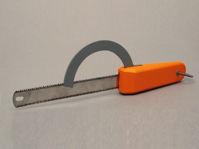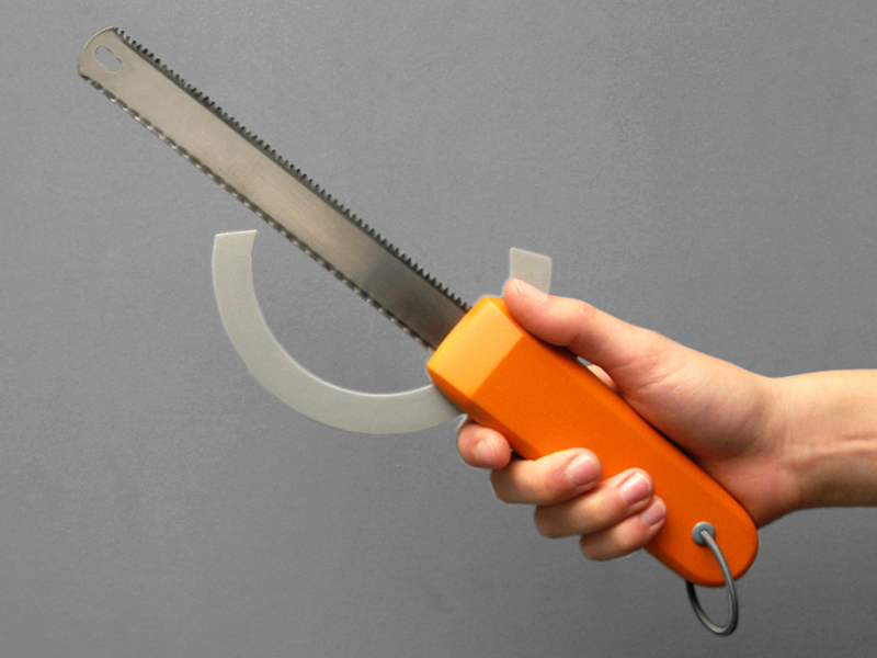 Uchwyt piłki wyposażony jest w ruchome, półkoliste ramię pozwalające stabilizować jedną lub drugą stronę brzeszczotu w zależności od rodzaju ciętego materiału – drewna lub metalu. Ramię w położeniu środkowym – nie stabilizuje brzeszczotu, pozwala na cięcie tuż przy powierzchni (np. wystający gwóźdź). Kształt uchwytu dobrze stabilizuje rękę w pozycji roboczej.