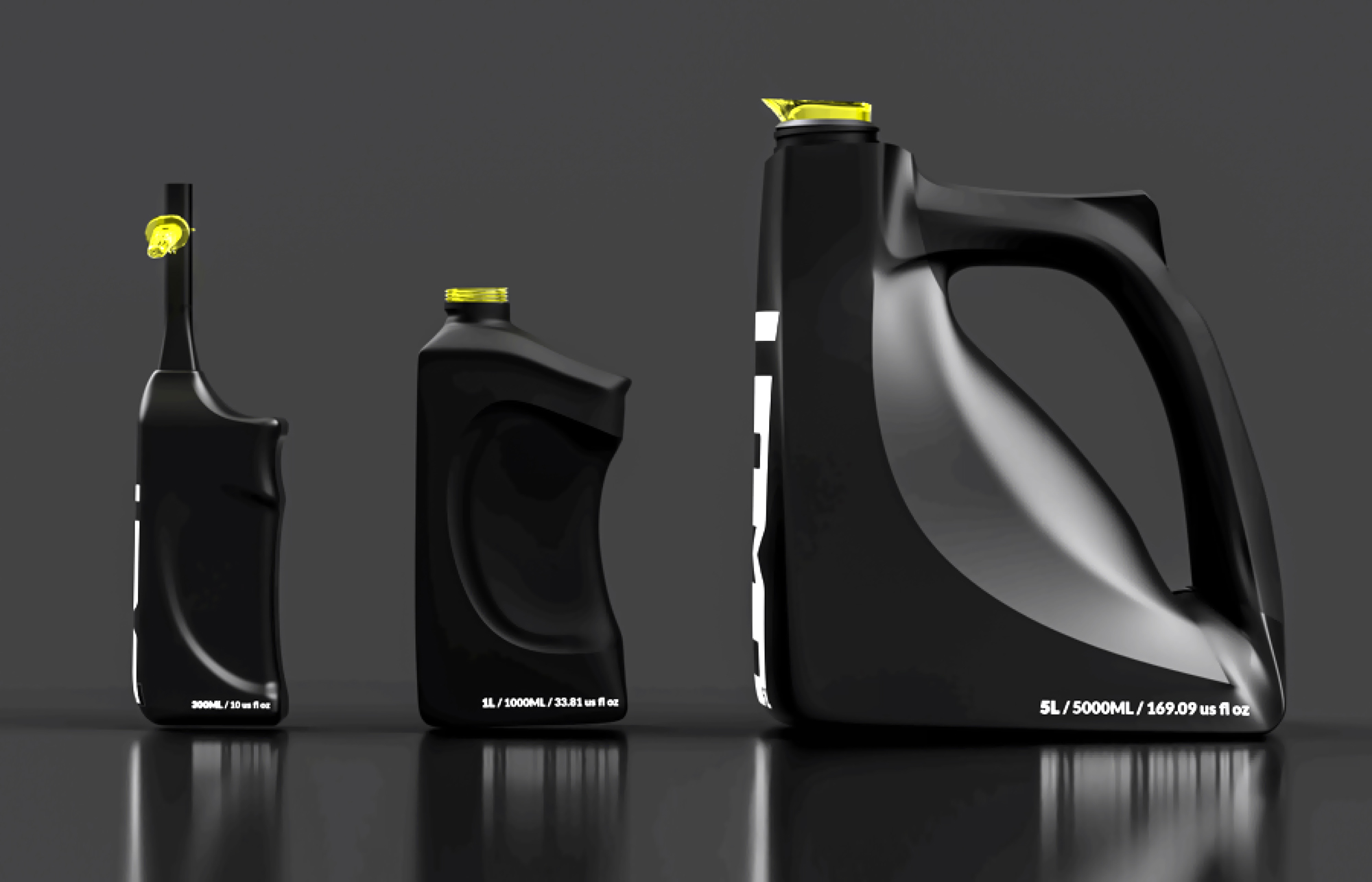 Rodzina pojemników na oleje samochodowe (poj. 400 ml, 1 litr, 5 litrów)