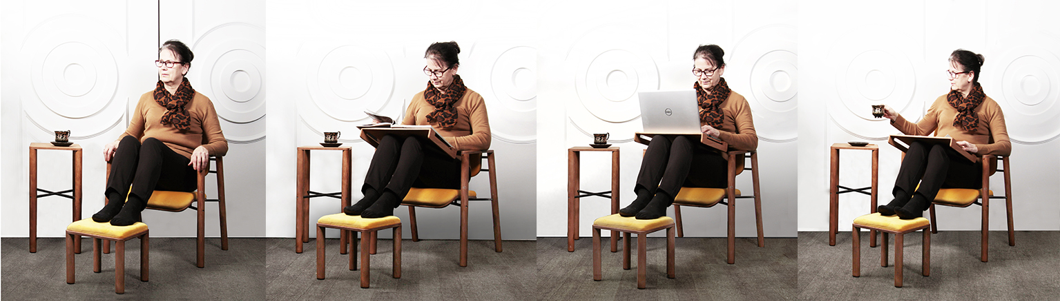 Celem pracy licencjackiej było zaprojektowanie produktu rynkowego, który zaspokoi realnie zaobserwowaną potrzebę. Inspiracja do projektu zrodziła się podczas obserwowania zachowania mojej mamy w domu. Zauważony problem to źle przystosowane miejsce do domowego relaksu. Postanowiłam zaprojektować fotel dedykowany dla osób w wieku przedsenioralnym. Ideą było zaproponowanie rozwiązania niestygmatyzującego osób starszych, w prostej technologii umożliwiającej przemysłową produkcję mebla. Projekt z założenia miał wspomagać zaobserwowane czynności relaksacyjne: czytanie książki, rozwiązywanie krzyżówek oraz picie herbaty. Rozwiązaniem projektowym jest zestaw mebli do wypoczynku domowego. W skład zestawu wchodzą cztery elementy: fotel, podnóżek, stolik i podstawka pod książkę/komputer. Wynikiem procesu projektowego jest prototyp zestawu mebli, wykonanych ze sklejki, drewna, tapicerki i stali.