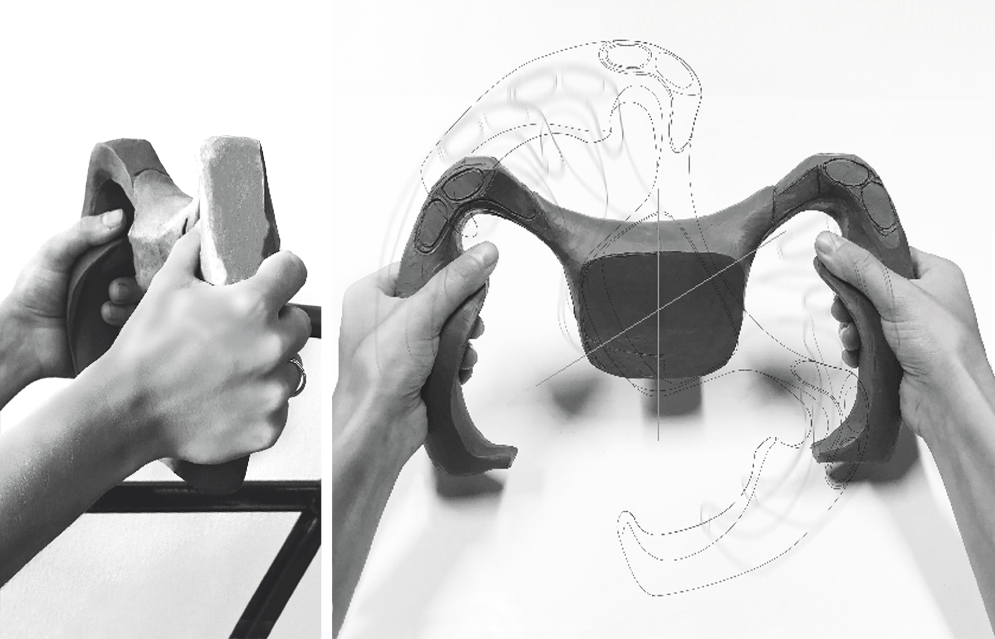 powierzchnię przylegającą do ręki, jednocześnie umożliwiając precyzyjną manipulację przez bliskość kciuka z palcem wskazującym. Projekt uwzględnia przestrzeń na ekran informujący o podstawowych parametrach pojazdu, takich jak prędkość, nawigacja, stan naładowania baterii. W ramach zajęć powstał model kierownicy w skali 1:1 wykonany z glinki modelarskiej.