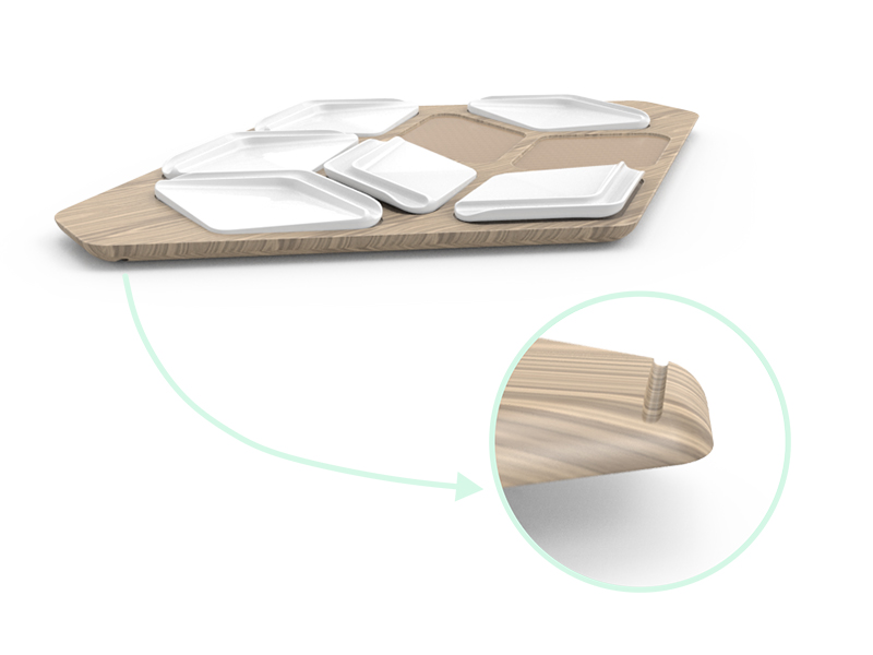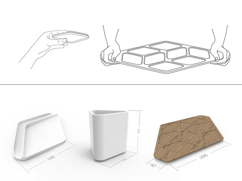 Projekt koncepcyjny zestawu ceramicznego powstał z myślą o organizacji przestrzeni stołu na rautach, wernisażach, bankietach. Jest to propozycja tworzenia kompozycji z 3 modułów: 1- talerzyk, 2- wazon/sosjerka. Projekt przy współudziale Fabryki Ceramiki w Ćmielowie.