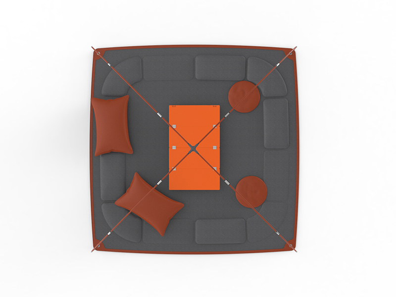 Zestaw składa się z kilku elementów takich jak rozkładany stół, zestaw poduszek, mata oraz zadaszenie. Zarówno sekwencja jak i konieczność ich rozkładania pozostawiają użytkownikowi dużą swobodę w kształtowaniu „obozowiska”. Najistotniejszym elementem jest stolik. Będąc jednocześnie transporterem dla pozostałych elementów składa się z czterech modułów wykonanych przy użyciu technologii formowania próżniowego połączonej z naturalnym drewnem. Jego pokrywy górna i dolna są jednocześnie nogami stolika, które dobrze wpasowują się w wytłoczone elementy. Mata do siedzenia posiada komory, które mogą być napełnione powietrzem w sposób swobodny. Poduszki również są nadmuchiwane i mogą być rozmieszczone w dowolnym miejscu. W przypadku, gdy potrzebujemy schronić się przed ostrym słońcem, lub deszczem, możemy rozłożyć zadaszenie, które składa się z rurek z włókna węglowego łączonych metalowymi łącznikami oraz nylonowego zadaszenia, które jest zamocowane do konstrukcji. Zamknięty pojemnik z elementami w środku jest spięty eleganckimi elastycznymi taśmami z wytrzymałego materiału.