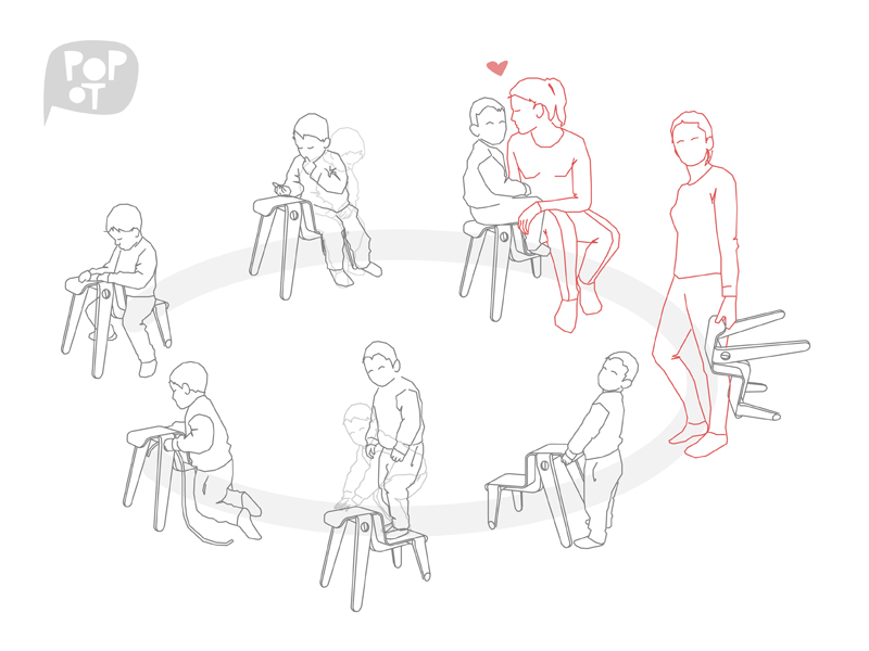 Popot to meblozabawka, która umożliwia siedzenie na wiele sposobów, został zaprojektowany z myślą o dzieciach w wieku 3-4 lat.