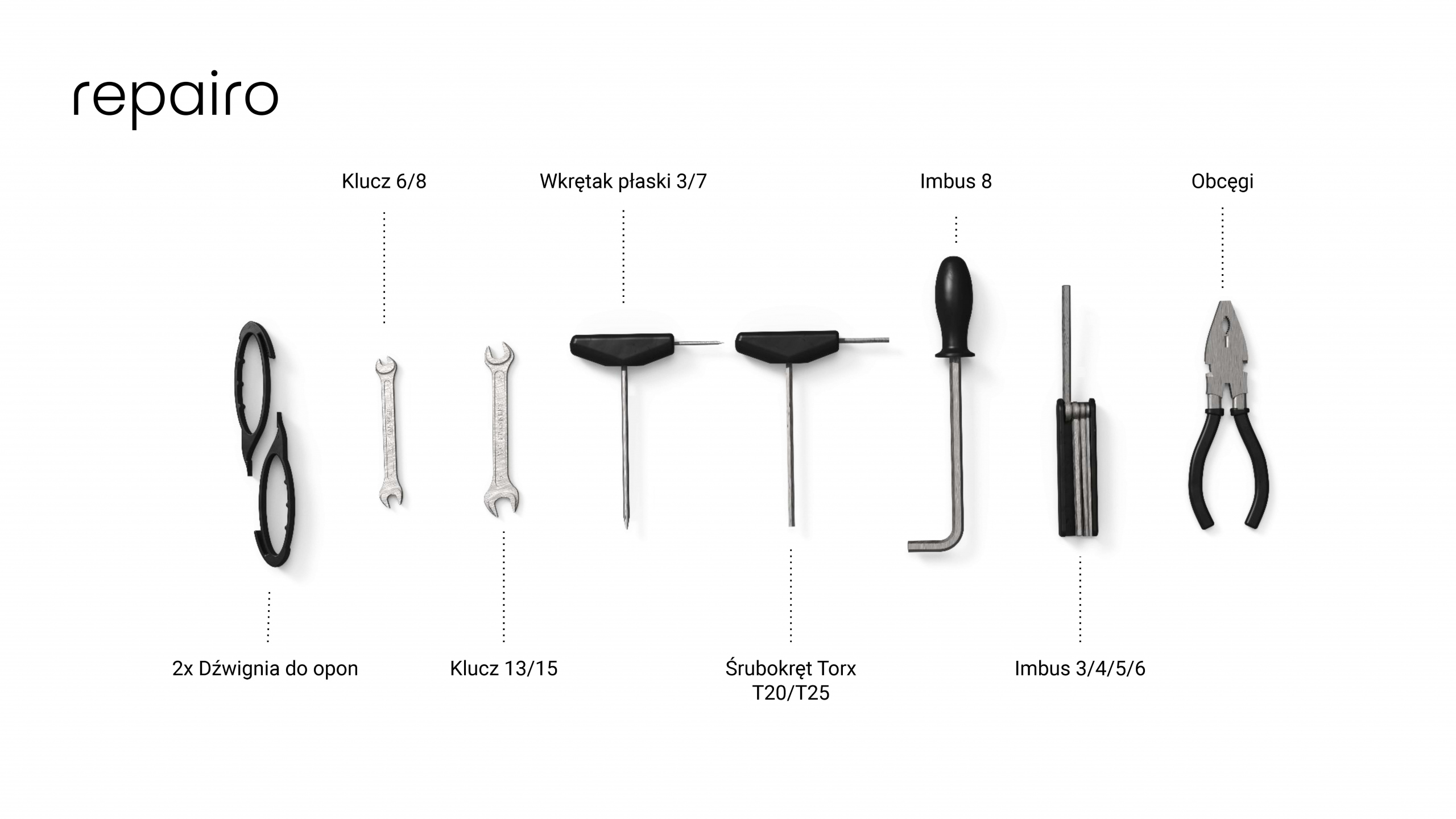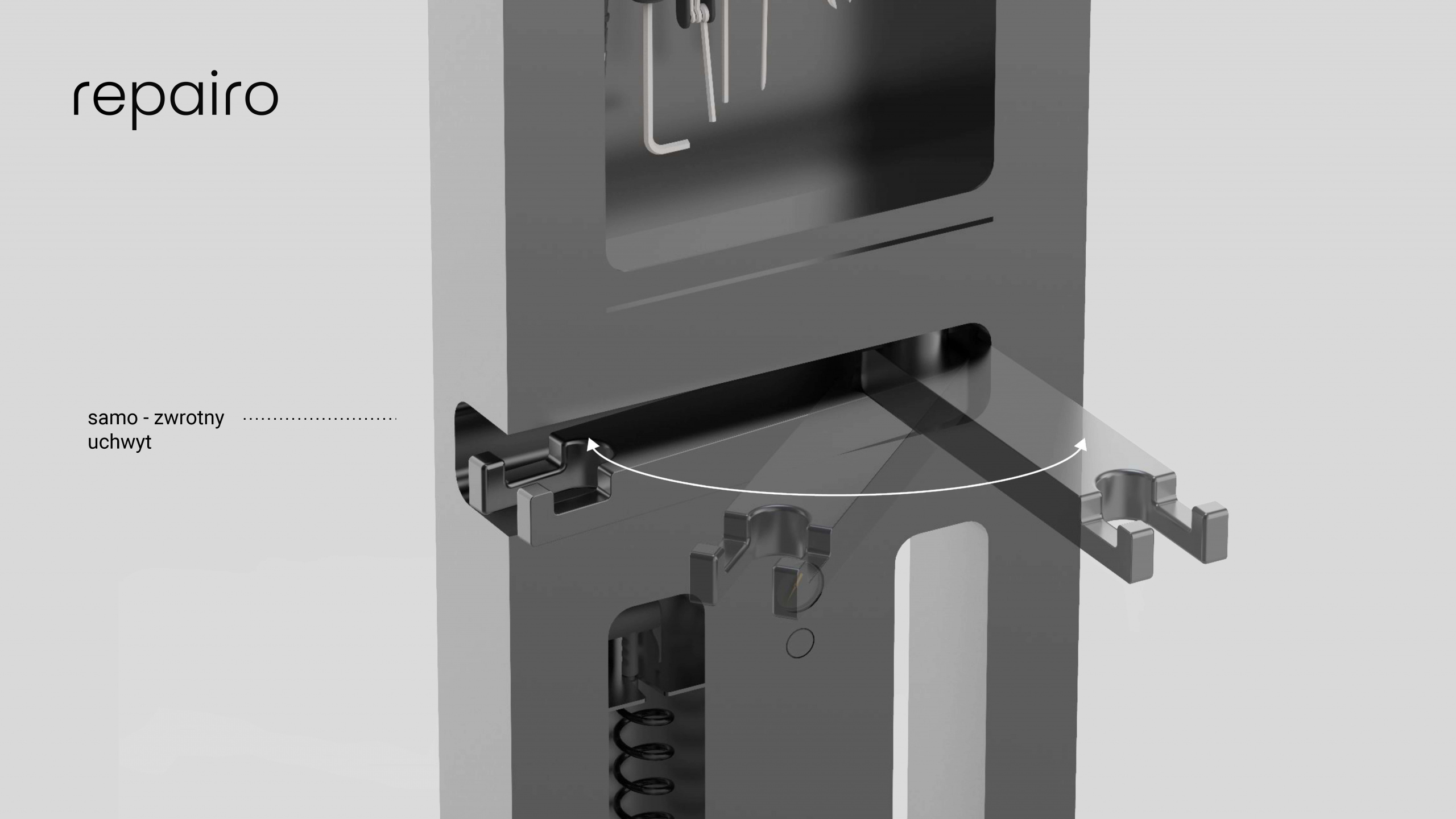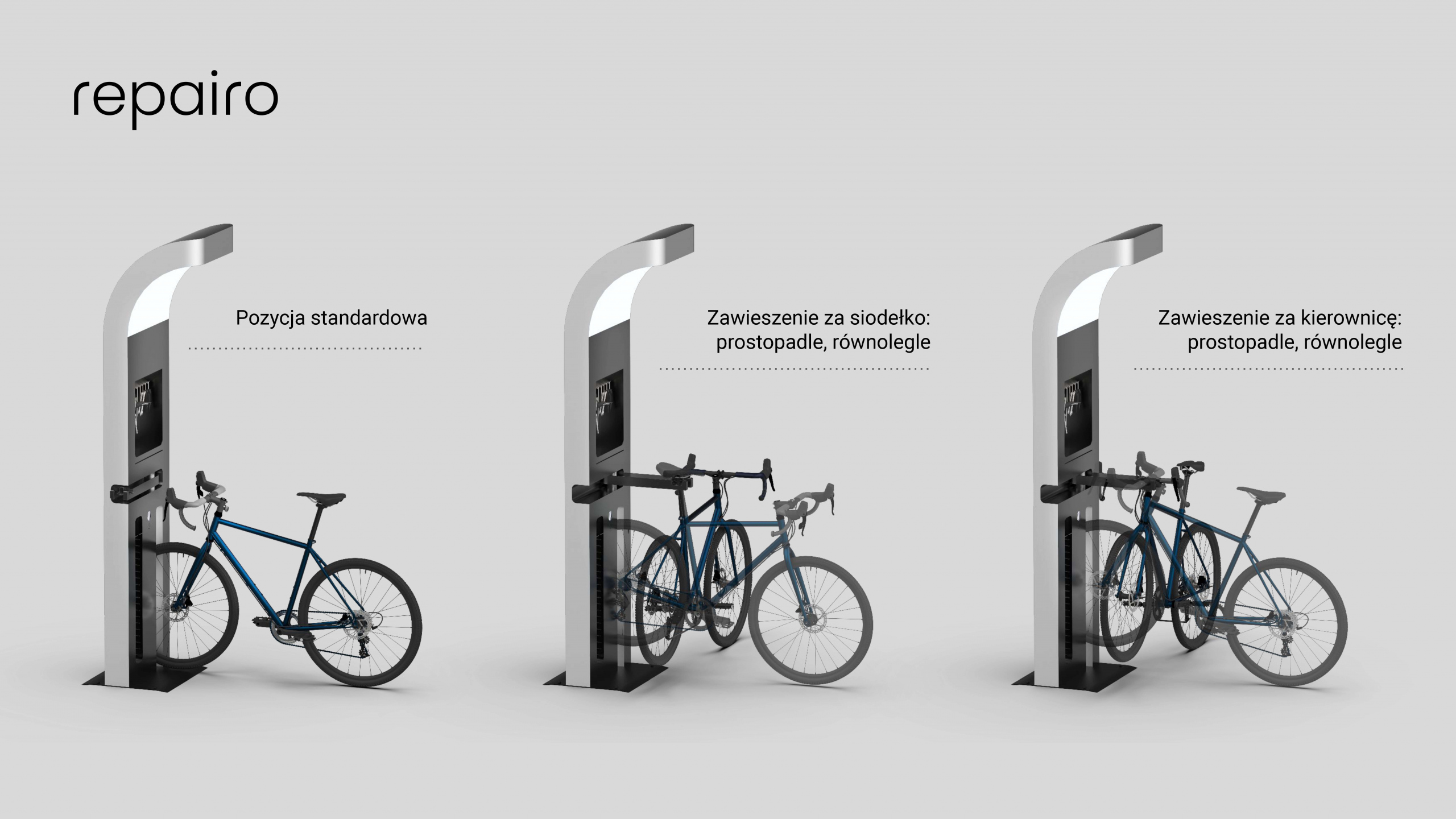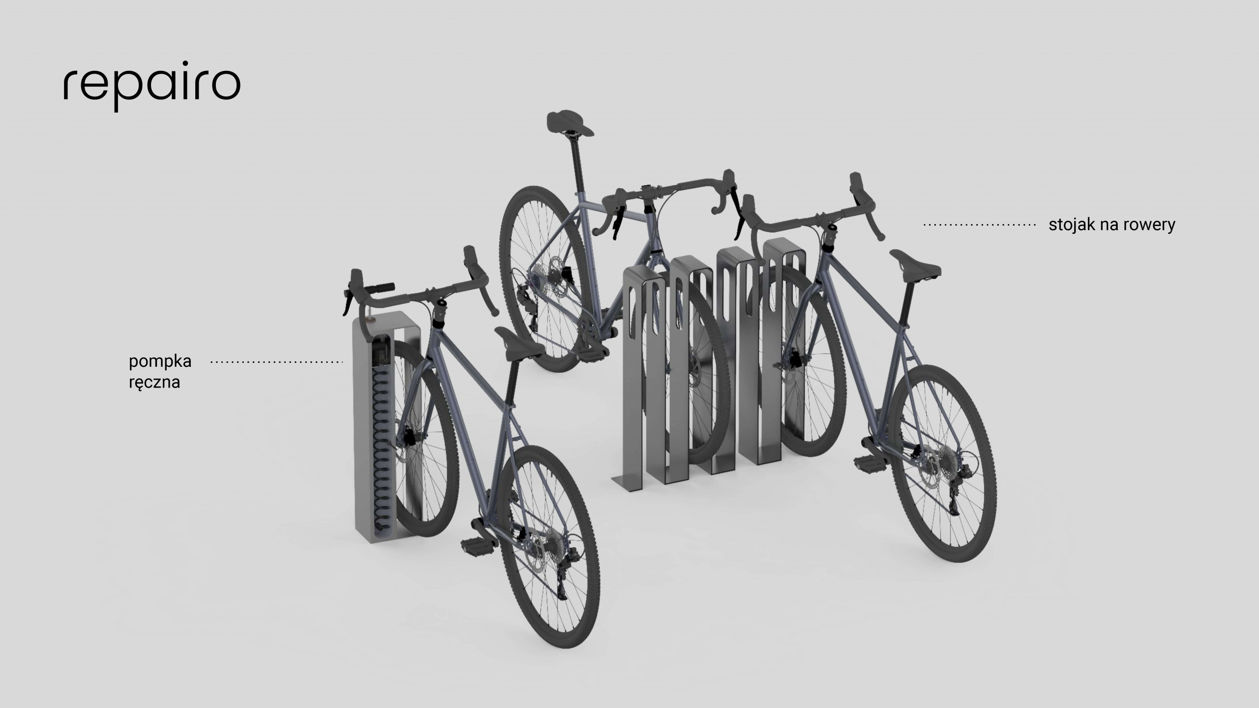 Repairo to miejska, ogólnodostępna stacji napraw rowerów. Obiekt zasilany jest panelami słonecznymi umieszczonymi na dachu obiektu. Pozwala to oświetlić miejsce naprawy oraz zasila kompresor. W stacji znajdują się podstawowe narzędzia przymocowane do linek, umieszczonych na zwijaczu. To rozwiązanie zwiększa komfort użytkowania i chroni narzędzia przed dewastacją. Komfortowi naprawy sprzyja również możliwość zawieszenia roweru w czterech różnych pozycjach. Gdy koła są pompowane, użytkownik może skorzystać ze szczeliny stabilizującej rower. W tylnej części stacji znajduje się mapa ścieżek rowerowych. W zestawie oprócz stacji napraw, przewidziane są ławka, kosz na śmieci oraz ręczna pompka.