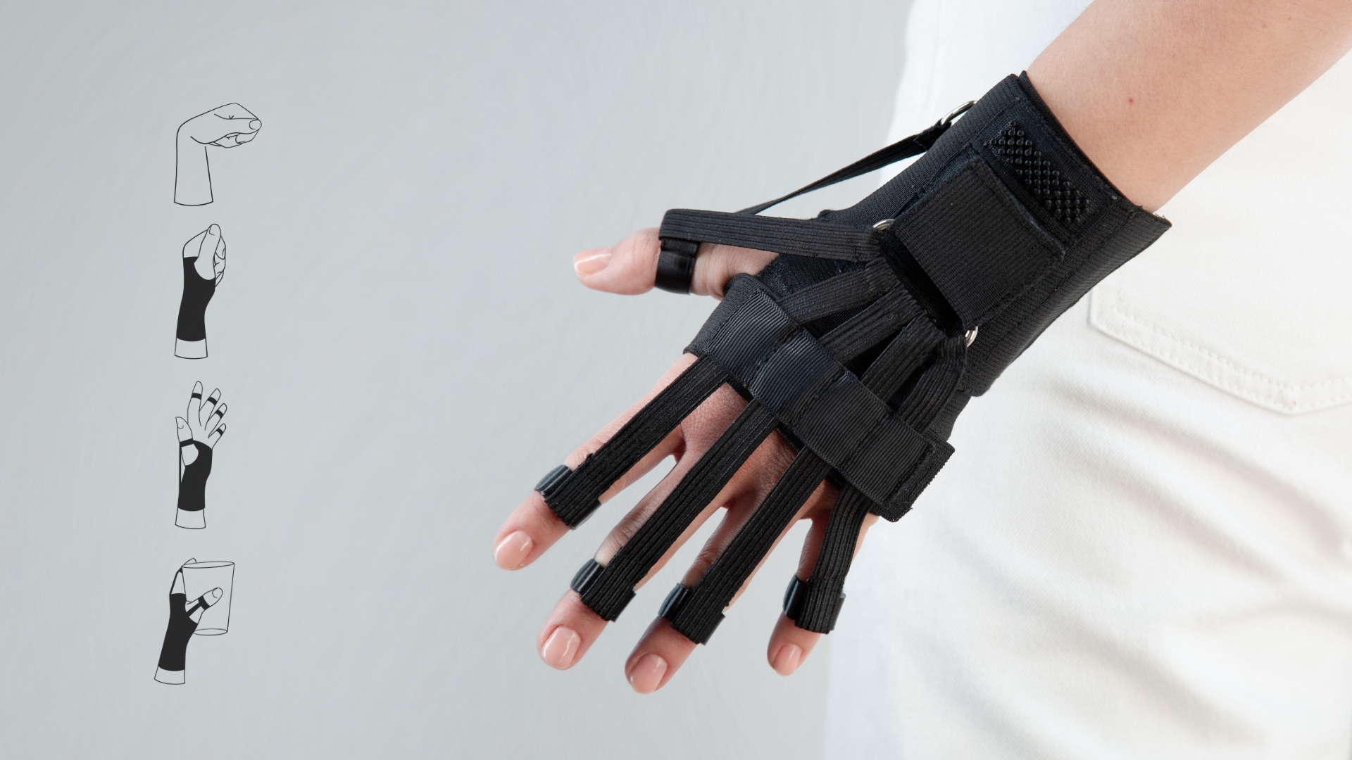 Orteza dla osób ze spastyką ręki. Wspomaga rehabilitację i umożliwia wykonywanie codziennych czynności. Cechą wyróżniającą ortezę jest stabilizacja nadgarstka z jednoczesnym prostowaniem palców umożliwiającym kontrolowane zginanie. Konstrukcja odsłaniająca dłoniową część ręki pozwala na bezpośredni chwyt przedmiotów codziennego użytku. Dwuczęściowa budowa ortezy pozwala na wygodne jej zakładanie na spastyczną dłoń oraz użytkowanie pojedynczych części w rehabilitacji ręki. Obiekt wizualnie podąża za anatomiczną budową ręki.