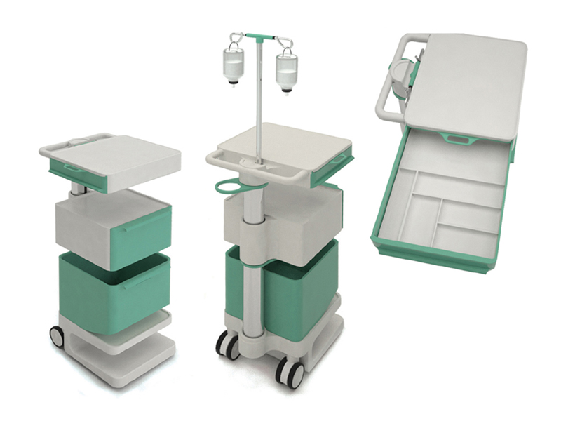 Zaprojektowana szafka przyłóżkowa to mebel umożliwiający spełnianie najważniejszych potrzeb pacjenta (jak: jedzenie, czytanie, segregacja osobistych przedmiotów). Składa się z bazy jezdnej, rury konstrukcyjnej, pojemnika na brudną bieliznę i pościel, wysuwanego statywu na kroplówki oraz dwóch szuflad. Nad górną szufladą znajduje się ruchomy blat. Poszczególne moduły szafki mogą być zastępowane innymi tak, aby spełniały wymagania konkretnego oddziału. Mebel zapewnia komfortowe użytkowanie, porządek przechowywanych w nim przedmiotów. Jego forma i materiały, z których został wykonany ułatwiają utrzymanie odpowiedniego poziomu czystości.
