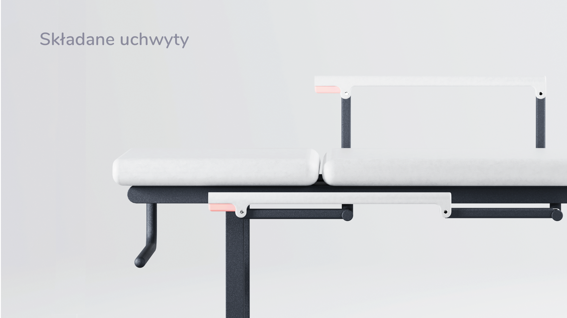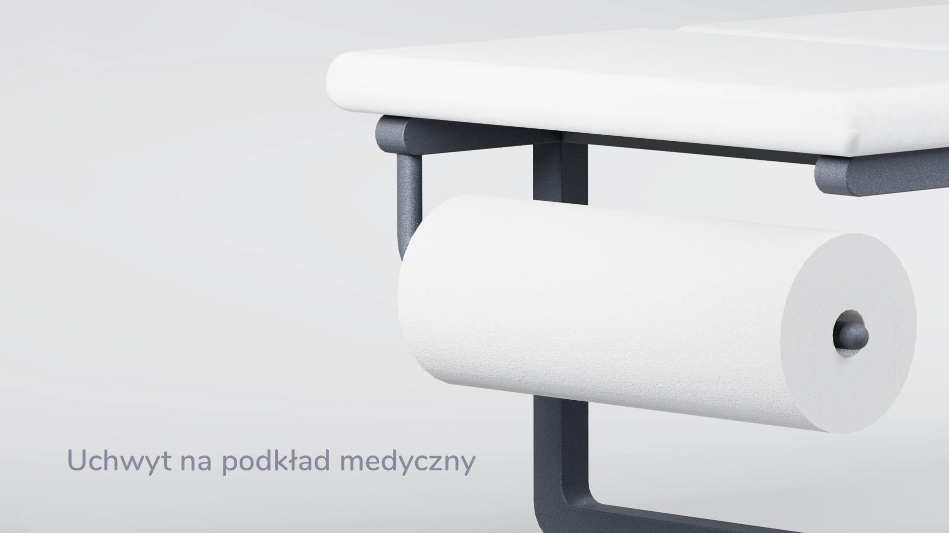 Projekt stanowiska do badań pacjentów w pozycji leżącej i siedzącej (również osób z niepełnosprawnościami i seniorów), zapewniające lekarzowi dobre warunki do badań