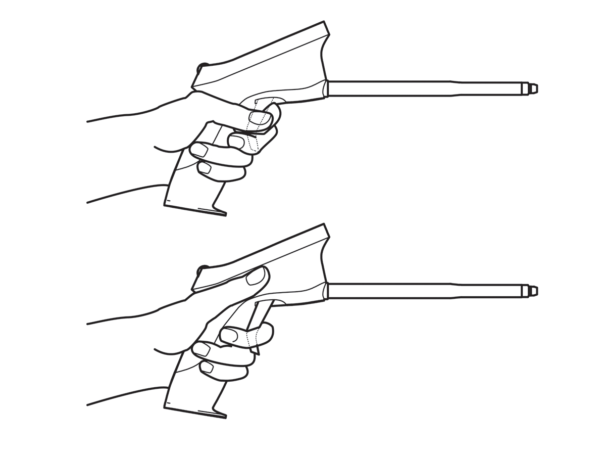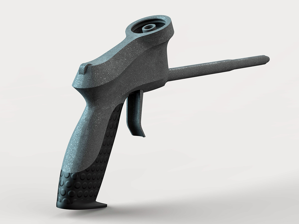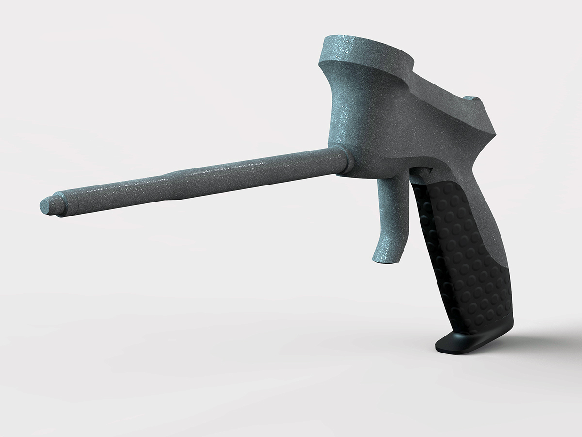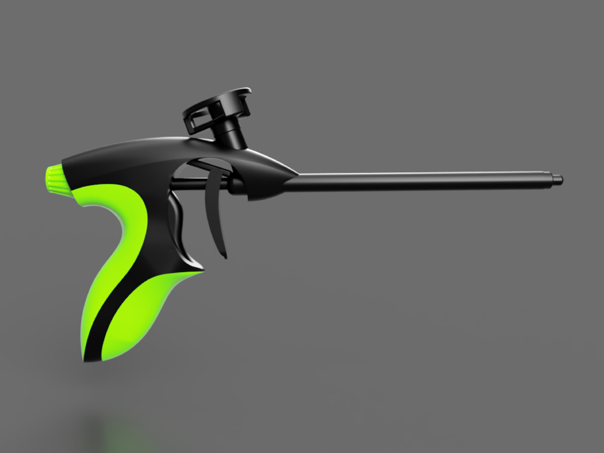 Pistolet został zaprojektowany, tak aby chwyt ręki podczas pracy znajdował się jak najbliżej środka ciężkości układu. W tym celu wzdłuż uchwytu zostało wykonane wgłębienie, w którym można oprzeć palec wskazujący (a to dodatkowo stabilizuje pistolet i ułatwia bardziej precyzyjne nakładanie piany). Pokrętło do regulacji strumienia piany znajduje się w intuicyjnym i nie przeszkadzającym podczas pracy miejscu. Elementy obudowy pistoletu zostały zintegrowane w jedną całość, tak aby zminimalizować ryzyko zabrudzenia mechanizmu.