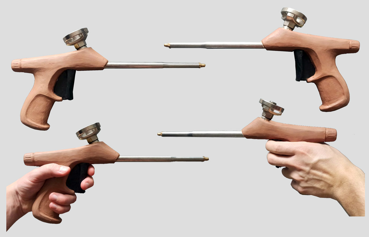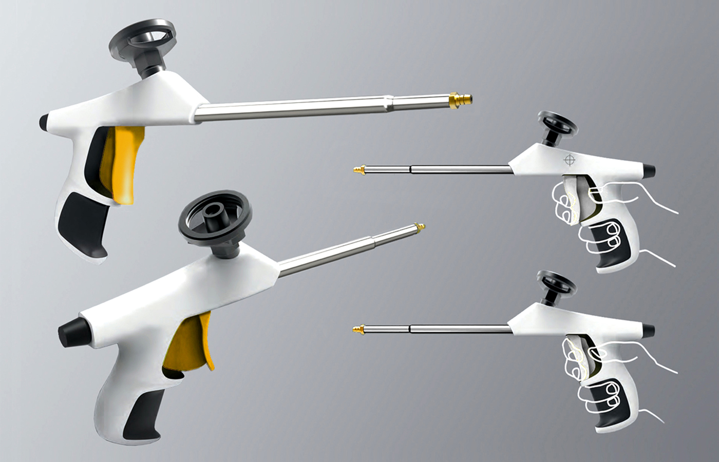 Projekt pistoletu do piany montażowej realizowany był jako praca semestralna, we współpracy z producentem pistoletów firmą Euromac z Gdyni. Przy projektowaniu formy urządzenia zaproponowano całkowitą obudowę układu mechanicznego dla łatwiejszego utrzymania narzędzia w czystości. Forma narzędzia pozbawiona jest ostrych krawędzi dla większego komfortu pracy a chowany i obudowany spust zapobiega ew. przycięciu palców.