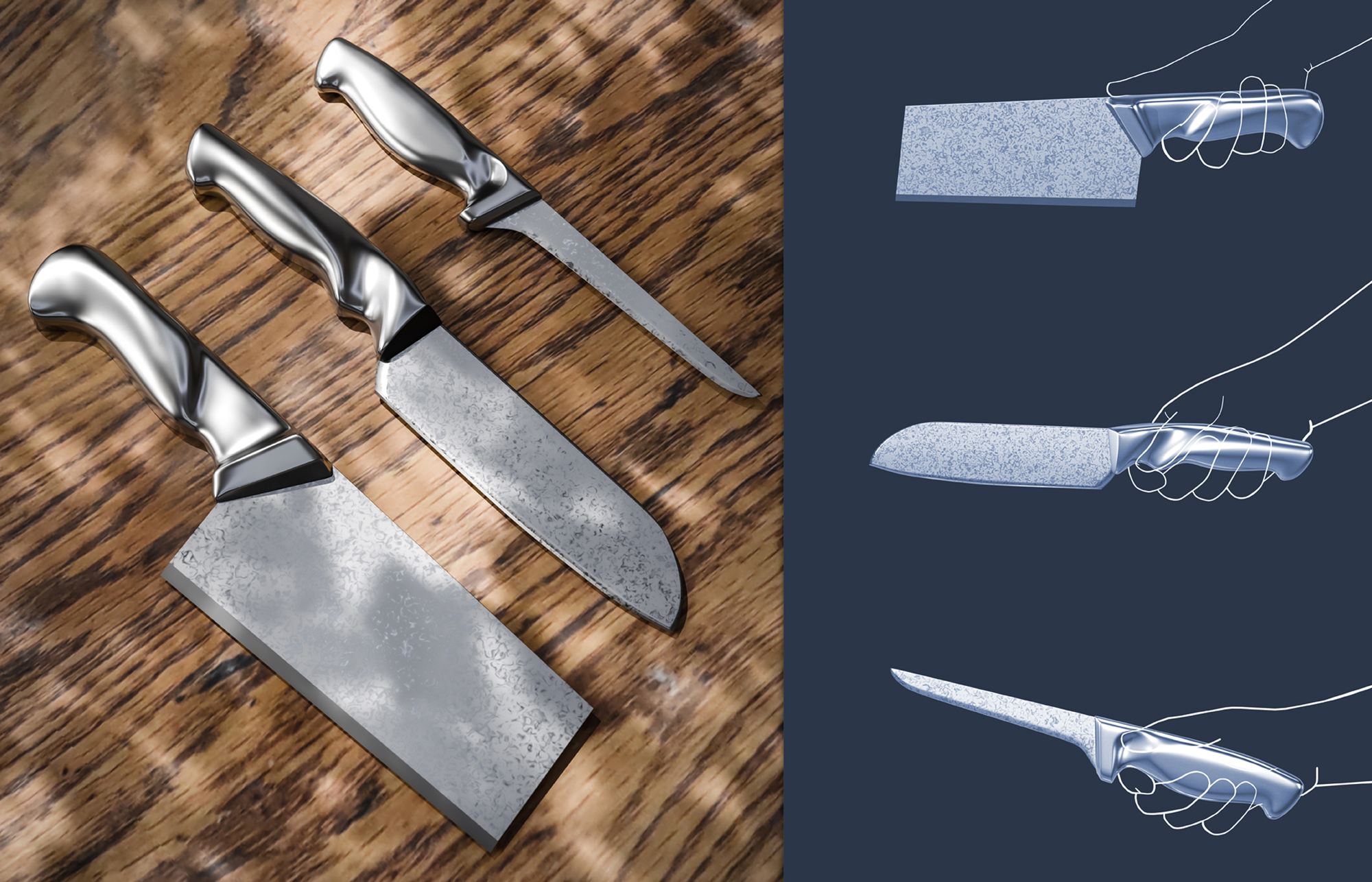 Projekt uchwyty narzędzi ręcznych – noże kuchenne