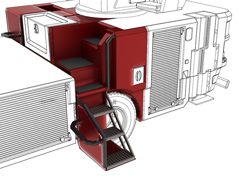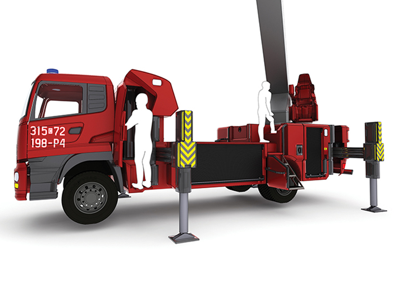 Projekt podnośników pożarniczych PTM 32 i PTM 42 to owoc współpracy z firmą Wawrzaszek Inżynieria Samochodów Specjalnych w Bielsku Białej. Głównym celem pracy była koncepcja poprawy funkcjonalności pojazdów oraz znalezienie nowej stylistyki dla serii samochodów zabudowywanych przez WISS. W projekcie uwzględniono dwa aspekty. Poprawę funkcjonalności i ergonomii pojazdów, w celu bezpieczniejszego i efektywniejszego ich użytkowania przez strażaków (m.in. poprawę pozycji roboczej obsługi przy rozkładaniu przypór hydraulicznych oraz szybsze i bardziej komfortowe dotarcie na stanowisko sterowania podnośnika). By zwiększyć bezpieczeństwo przewidziano dodatkowe źródła światła oświetlające pokład i teren wokół pojazdu. Praca obejmuje również przeprojektowanie przestrzeni ładunkowej pojazdu. Drugim to spełnienie oczekiwań producenta, który oczekiwał zaprojektowania uniwersalnej zabudowy modułowej umożliwiającej skrócenie czasu produkcji i obniżenie kosztów realizacji. Wykonany projekt stanowi spójną koncepcję funkcjonalno-wizualną, a możliwość współpracy z WISS oraz Bumar Koszalin S.A. nadała naszemu projektowi walory użytkowe. Zaproponowane rozwiązania: umiejscowienie panelu sterowniczego, konstrukcja schodów oraz zabudowa za kabiną zainicjowały proces wdrożeniowy tych rozwiązań w pojazdach pożarnictwa oraz w innym sprzęcie producenta.