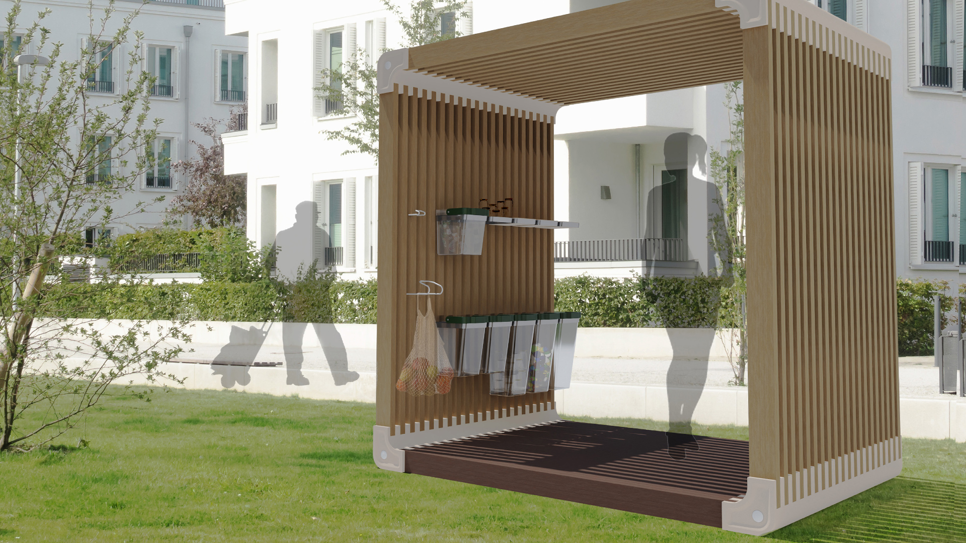 Projekt pawilonu cyrkularnego, będącym miejscem wymiany przedmiotów użytkowych wśród mieszkańców. Pozwala on na zaszczepienie w lokalnej społeczności ducha cyrkularności i rozwój sąsiedzkich więzi. Na projekt składa się zaprojektowany pawilon, który można rozbudowywać do potrzeb miejsca, wraz z system półek i wieszaków, dzięki którym mieszkańcy mogą przekazać zbywające im rzeczy. Ideą projektu jest przedłużenie życia przedmiotów, które są dla jednej osoby nieprzydatne, a nadal pozostają w dobrym stanie i mogą być przydatne dla kogoś innego.