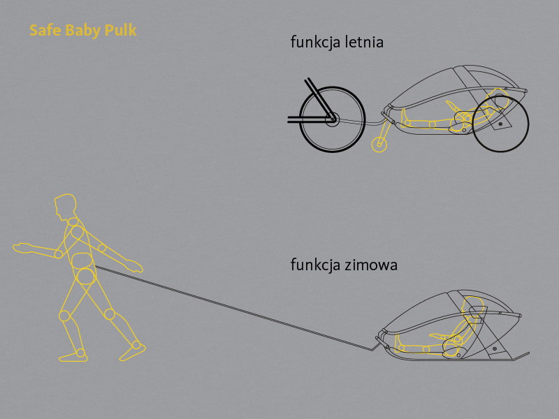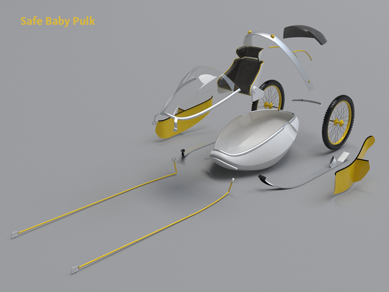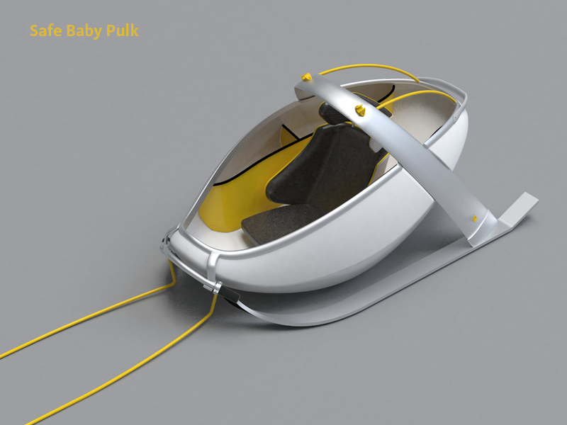 Safe Baby Pulk to projekt skierowany do miłośników zimowego trekkingu, którzy na górskie wyprawy planują zabierać ze sobą dzieci. Projekt umożliwia bezpieczny i komfortowy transport dzieci w wieku od sześciu miesięcy do czterech lat. Obszerna wewnętrzna przestrzeń umożliwia przewożenie dziecka zarówno w pozycji siedzącej, jak i leżącej. Odpowiednio wyprofilowany kształt kadłuba zapewnia doskonałą ochronę i maksymalną stabilność podczas jazdy. Aluminiowa lekka rama będąca elementem konstrukcji poprawia bezpieczeństwo dziecka, nie będąc przy tym obciążeniem dla osoby dorosłej. Projekt przewiduje również użytkowanie Safe Baby Pulk w wersji letniej jako wózka mocowanego do roweru.