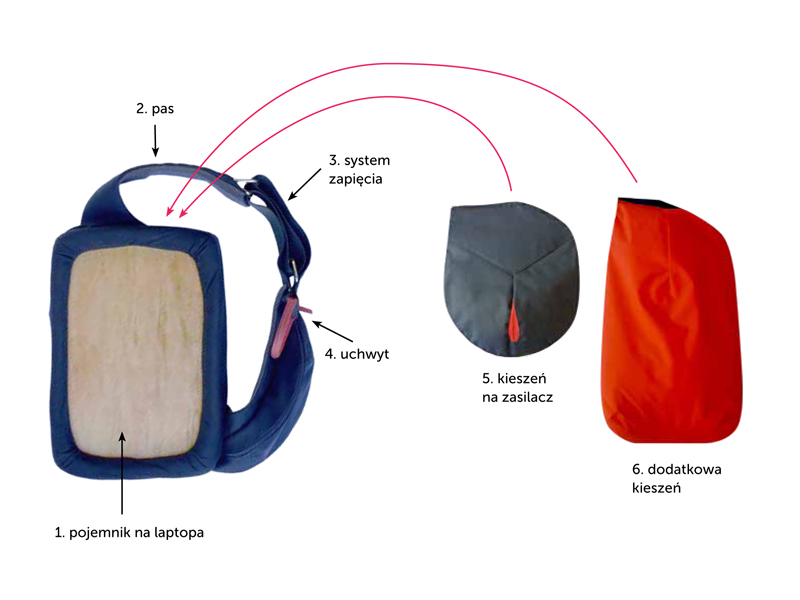 Proces użytkowania składa się z trzech czynności: przenoszenie, użytkowanie na kolanach oraz czynność będąca przejściem pomiędzy nimi. W przypadku przenoszenia istotny jest sposób umieszczenia na plecach i rozłożenia ciężaru na ciele użytkownika ze względu na asymetryczne ułożenie pasa. Z kolei podczas użytkowania laptopa w pozycji siedzącej na kolanach, istotna jest łatwość korzystania z komputera, ochrona przed temperaturą i łatwy dostęp całego ekwipunku. To, co jest bardzo istotne w projekcie, to mała ilość kroków potrzebna do umieszczenia komputera w pozycji pracy.