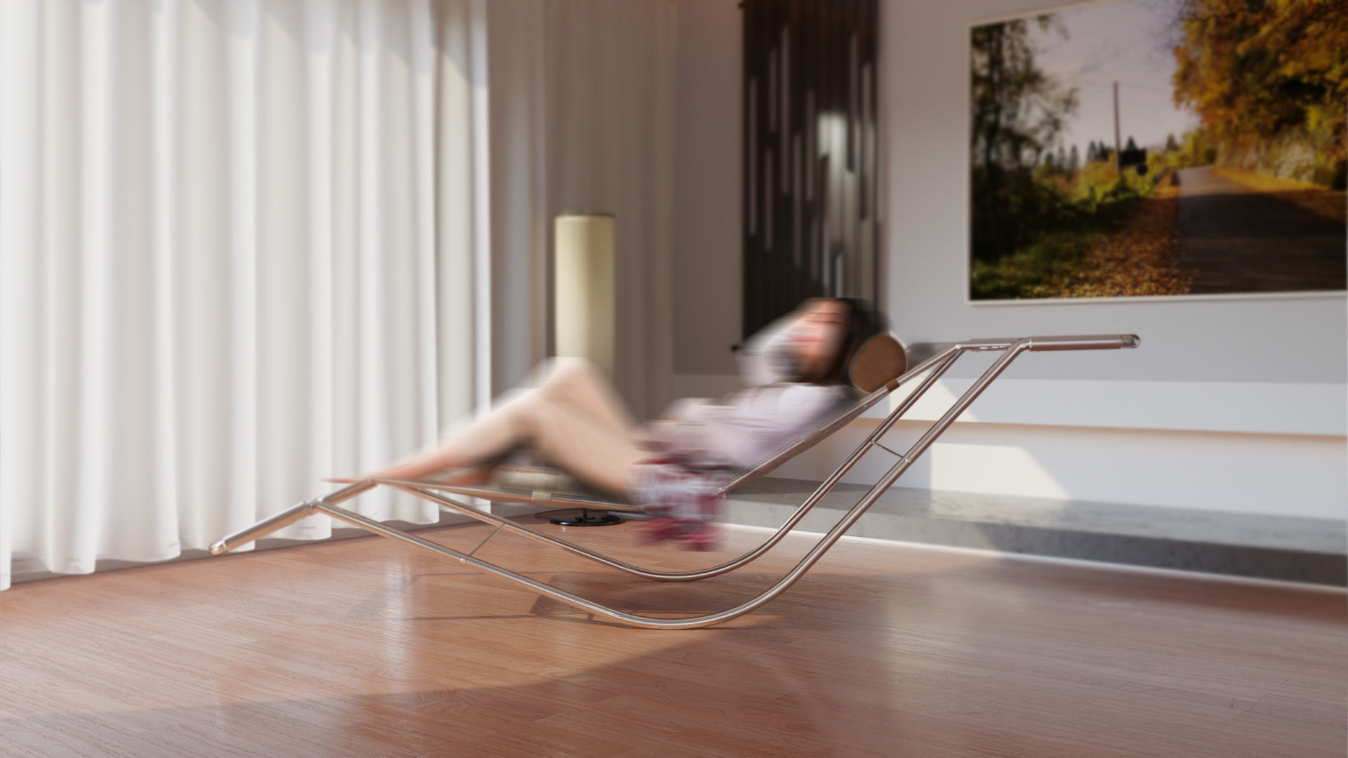 Projekt bujaka ma sprzyjać wytchnieniu. Rozwiązanie koncentruje się na powolnym ruchu i jego wpływowi na relaks. Dotychczasowe rozwiązania bujaków charakteryzują się szybkim i krótkim ruchem. Testy na modelach w skali 1:10 pozwoliły dobrać odpowiedni kształt płóz oraz charakterystykę ruchu. W finalnym rozwiązaniu w skali 1:1 został wyliczony środek ciężkości i rozłożenie mas optymalne dla osiągnięcia powolnego ruchu. Rozwiązanie to pozwala osiągnąć wytchnienie poprzez wolny ruch i skupić uwagę użytkownika na przyjemności uzyskiwania równowagi.
