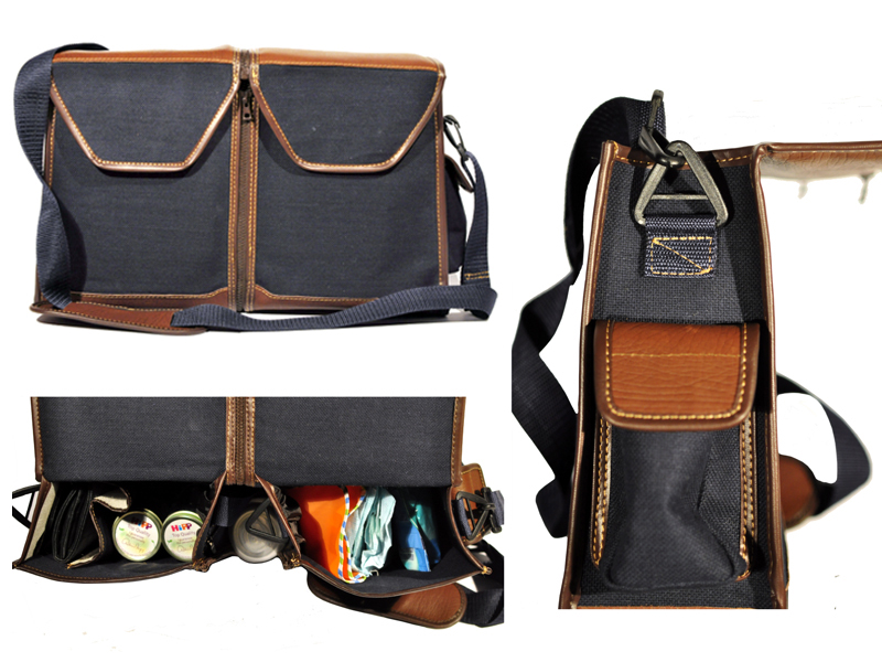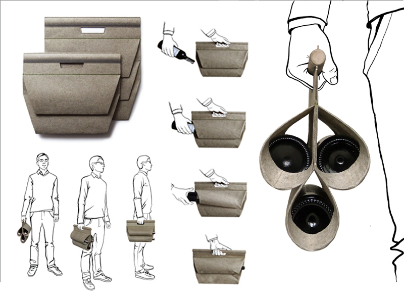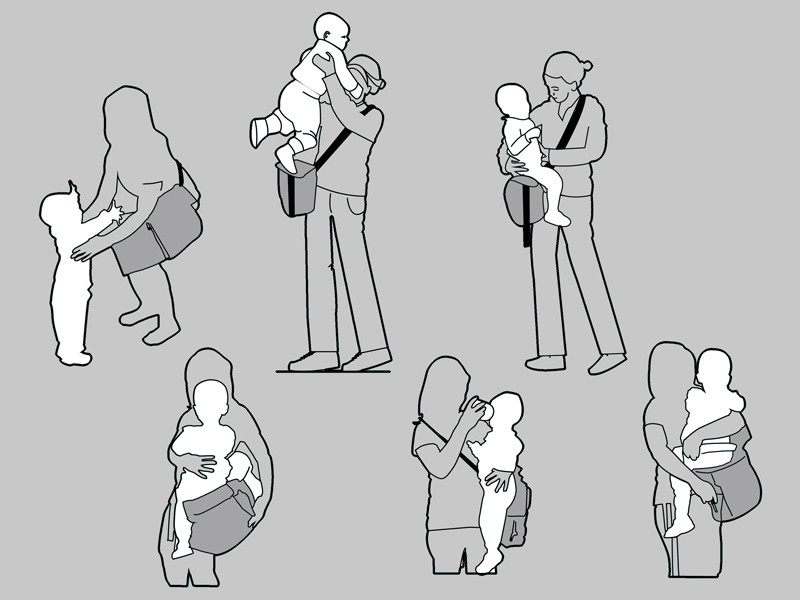 i bagażem jest wyjątkowo trudne. Klapa torby jest siedziskiem wspomagającym przenoszenie dziecka, dzięki czemu jedna ręka matki pozostaje swobodna. Projekt składa się z dwóch niezależnych komór, które mogą być używane pojedynczo lub złączone w jedną, dużą torbę.