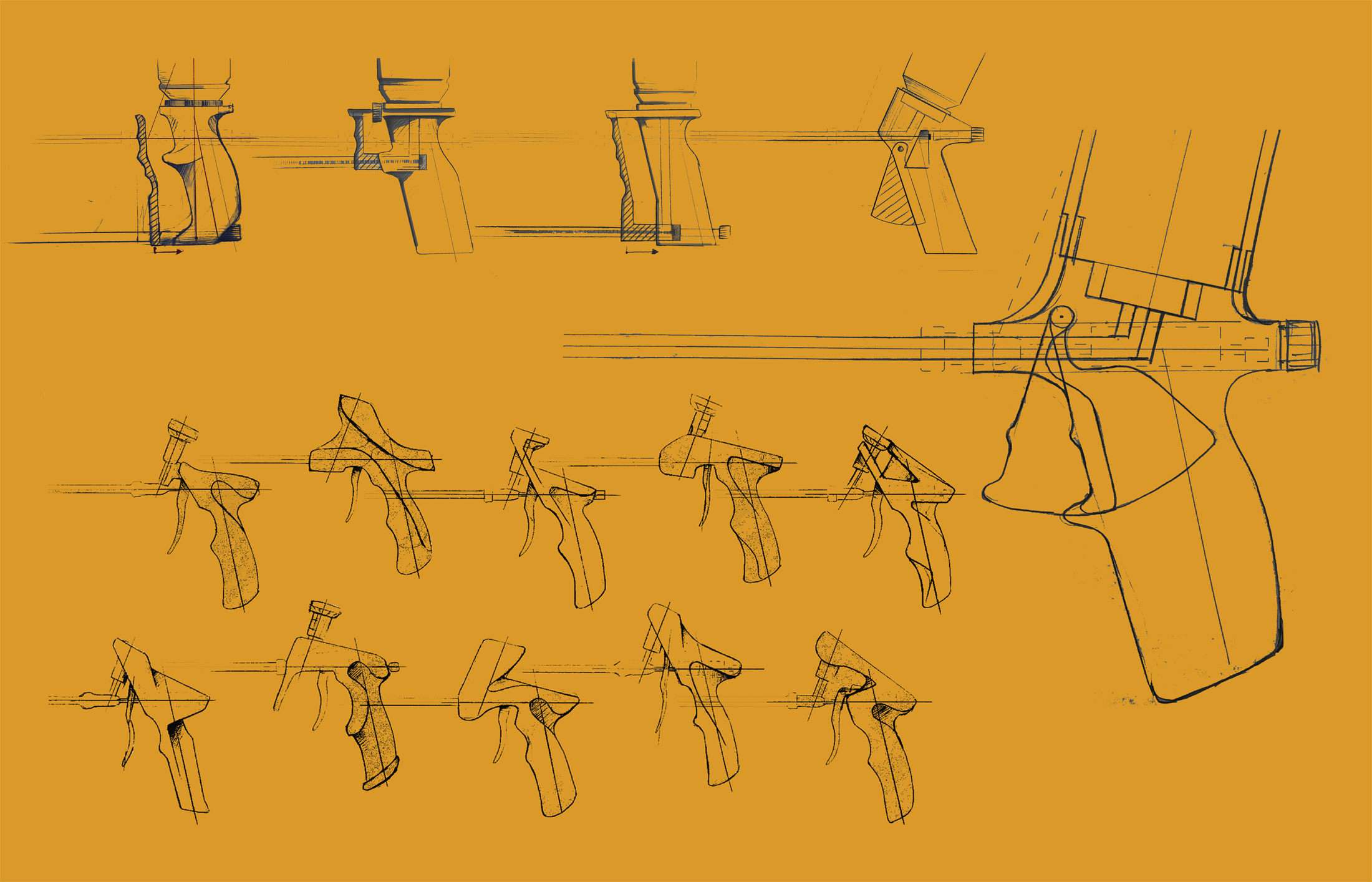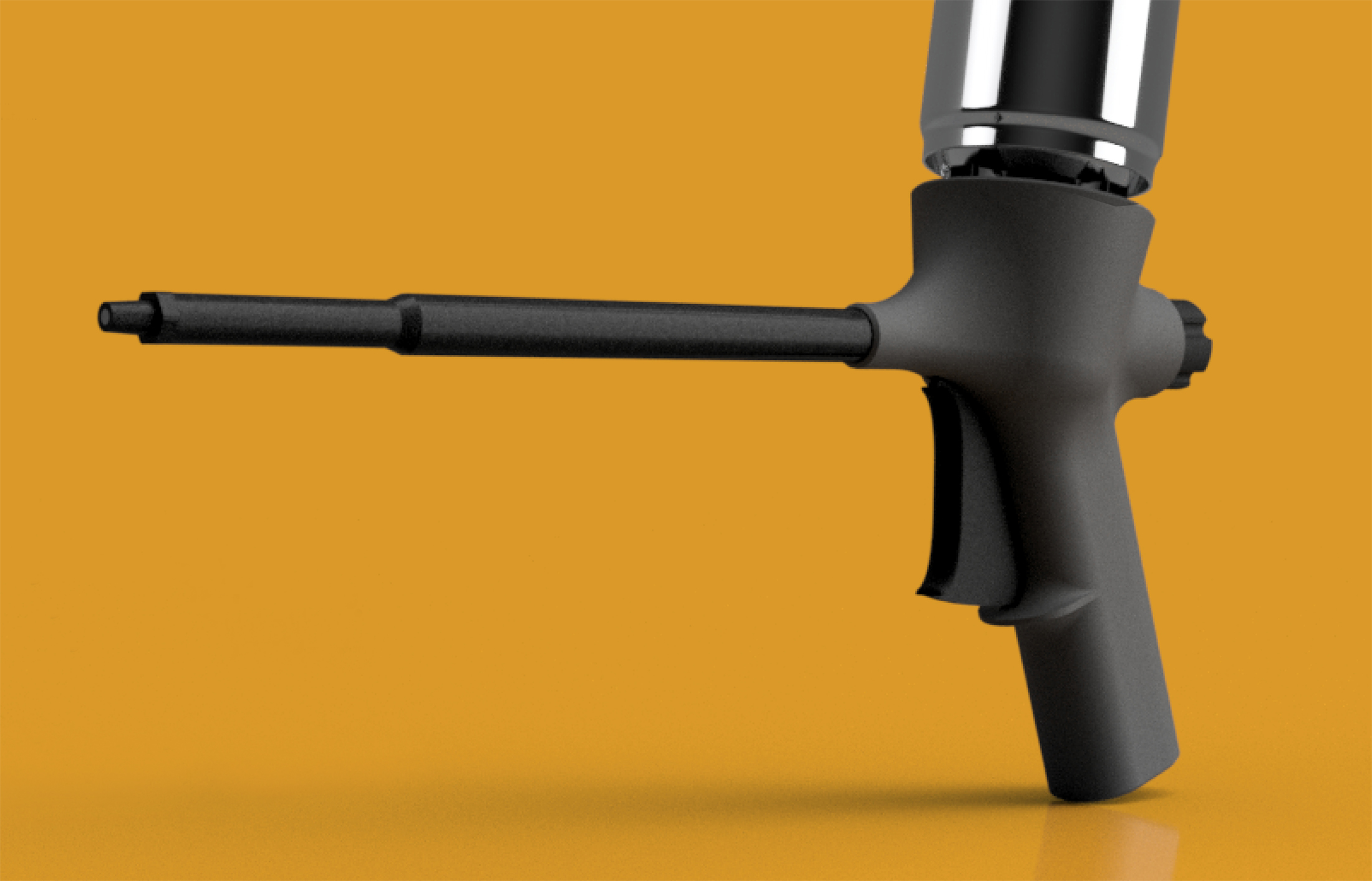 Projekt pistoletu oparty został na przeniesieniu uchwytu pod butlę z pianą w taki sposób, aby środek ciężkości trzymanego narzędzia podczas pracy lokalizował się w osi chwytu. Taki zabieg powoduje bardzo dobre wyważenie urządzenia co przekłada się mniejszy wysiłek, podnosi komfort jego użytkowania i pozwala na dłuższą pracę. Mechanizm urządzenia został przebudowany, oraz w pełni osłoniony, chroniąc go przed potencjalnymi zabrudzeniami od piany.