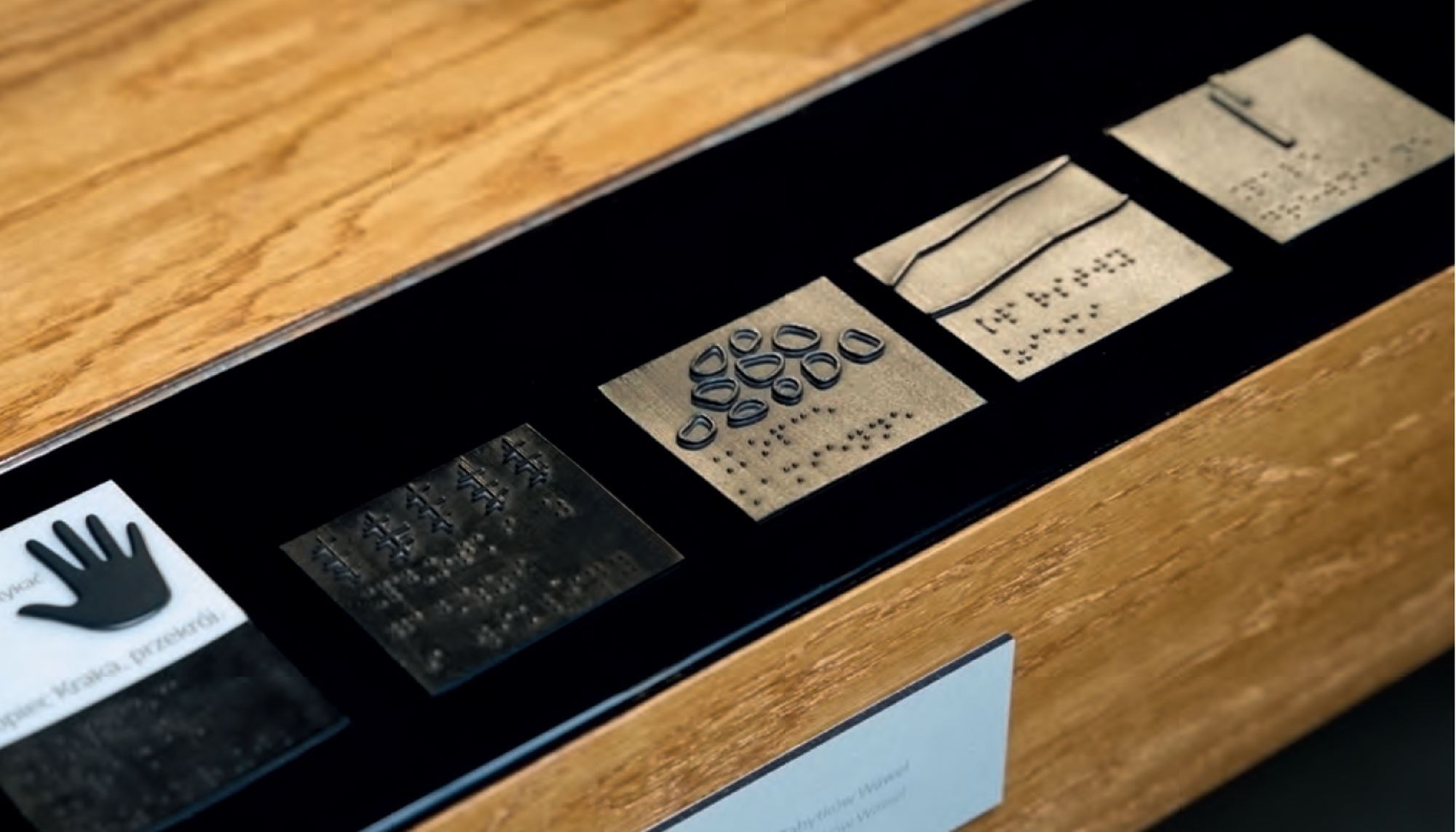 Celem pracy było zaprojektowanie i wdrożenie pomocy dotykowych dla osób z dysfunkcją wzroku do wystawy stałej Miasto pod kopcem Kraka w Muzeum Podgórza w Krakowie. Rozwiązanie miało być zintegrowane z aranżacją wystawy, tak aby osoby z niepełnosprawnością wzroku mogły zwiedzać ją jak pozostali odbiorcy, bez konieczności wcześniejszego umawiania wizyty. Praca obejmowała również projekt mebli ekspozycyjnych i fragmentów komunikacji wizualnej. Elementy projektu miały odpowiadać na potrzeby zwiedzających z dysfunkcją wzroku, a jednocześnie stanowić atrakcyjną propozycję dla wszystkich odwiedzających ekspozycję. Ważną częścią pracy było również zbadanie potencjału technologii druku 3D na potrzeby projektowania pomocy dotykowych. Istotnym etapem były testy i eksperymenty materiałowe w druku 3D. Celem pracy było też poszukiwanie nowych metod projektowania modeli i makiet architektonicznych dostosowanych do percepcji dotykowej. Dodatkowym, ważnym zadaniem pracy było zwrócenie uwagi na specyficzne potrzeby osób z dysfunkcją wzroku w przestrzeni muzealnej. Projekt dobrze wpisuje się w całość wystawy, wzbudza zainteresowanie wszystkich zwiedzających i wzmacnia wizerunek Muzeum Podgórza jako instytucji dostępnej i otwartej na potrzeby różnych użytkowników.