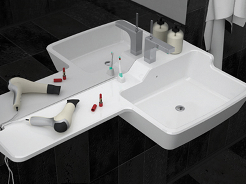 Produkt powstał z myślą o wygodnym wykonywaniu codziennych czynności higienicznych, ale również gospodarczych. W dotychczasowych produktach znajdujących się na rynku mało uwagi poświęcono takim potrzebnym funkcjom jak: nalewanie wody do miednicy, przepierki, mycie większych obiektów itp. Wykonywanie czynności gospodarczych sprzyja zaproponowana podniesiona wylewka armatury oraz kształt samej misy. W projekcie podzielono obiekt na dwie części „mokrą„ i kosmetyczną. W części kosmetycznej zwężona półka pozwala użytkownikowi na zbliżenie się do lustra oraz odłożenie na niej kosmetyków. Takie rozwiązanie znacznie ułatwia wykonywania czynności precyzyjnych (wykonywanie makijażu, czyszczenie aparatu ortodontycznego, zakładanie soczewek i inne).