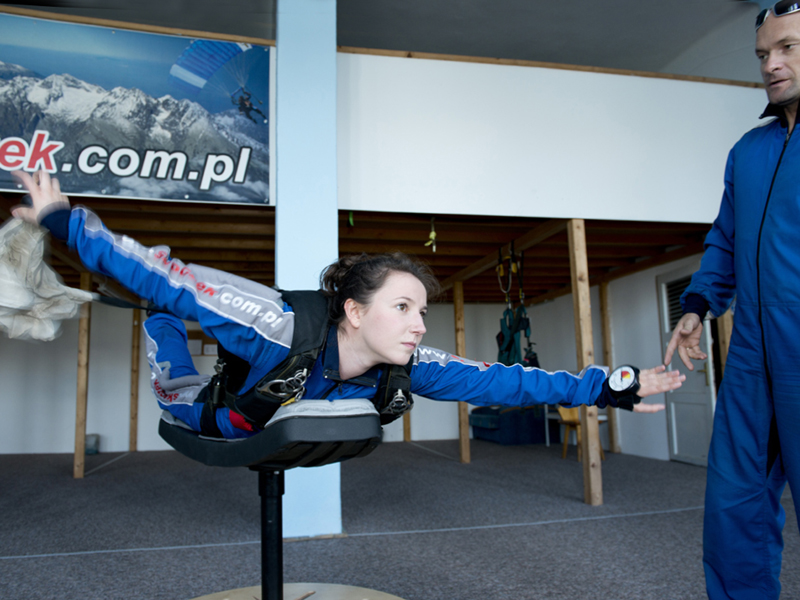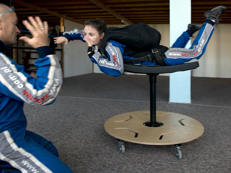 Freefall basic to wysoki na 80 cm stojak, na którym umieszczona jest specjalnie kształtowana powierzchnia, umożliwiająca przyjęcie uczniom skoczkom podstawowej, stabilnej pozycji (tzw. boxman). Przyrząd ten pozwala wyćwiczyć prawidłowe odruchy niezbedne do radzenia sobie z zaistniałą, niebezpieczną sytuacją. Wykonany jest z laminatu z włókna węglowego oraz aluminiowego stelaża. Forma obiektu przypomina o istotności symetrii w prawidłowej pozycji, przez zastosowane wyraźnych podziałów na powierzchni w piance termoformowanej. Środkową część powierzchni można zdemontować i podwiesić na linkach do konstrukcji lub do haka pod sufitem – taki zestaw pozwala ćwiczyć destabilizację oraz sytuacje awaryjne. Po zakończeniu sezonu przyrząd można złożyć (gabaryt 90 x 90 x 40).