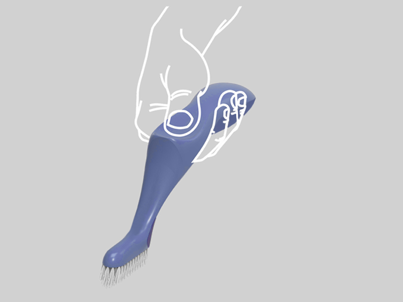 Uchwyty szczotek charakteryzują się kształtem biologicznym (odwłok osy), dzięki któremu uzyskano większą powierzchnię chwytu. W ten sposób otrzymano polepszenie stabilizacji narzędzia podczas jego użytkowania. Uchwyty mają wykonane wgłębienia na palec, które ukierunkowują chwyt. Cechy te powtórzone we wszystkich narzędziach w komplecie, czynią szczotki spójnymi stylistycznie.