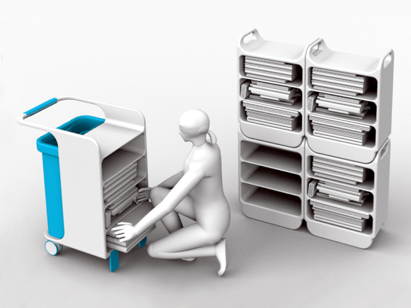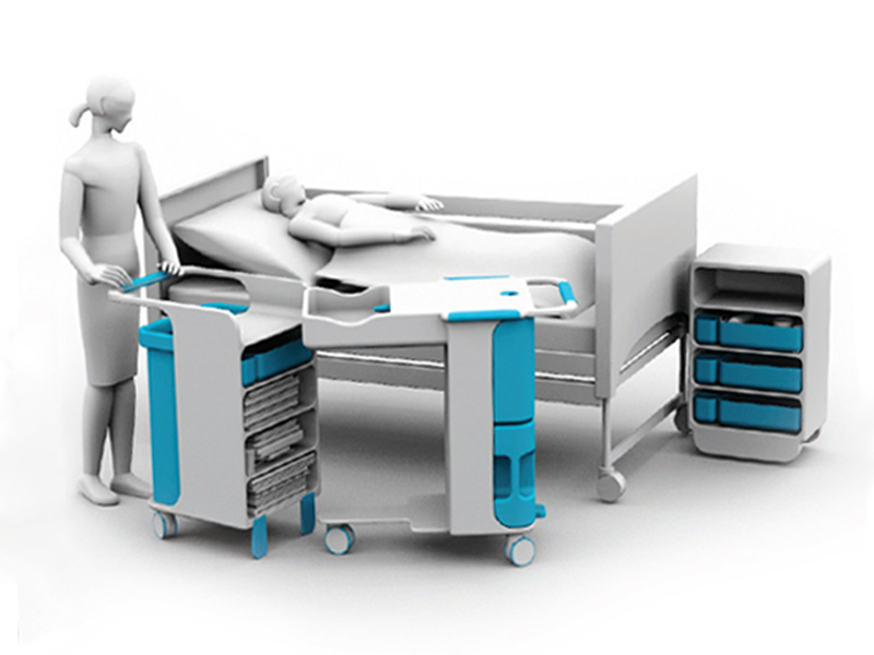 Zestaw do codziennej pielęgnacji osób z długoterminową lub tymczasową dysfunkcją ruchu. Przeznaczony do domów opieki społecznej, oddziałów szpitalnych lub geriatrycznych, usprawniający prace pielengniarek i opiekunów podczas wykonywania codziennych zabiegów pielęgnacyjnych. Zestaw organizuje pracę, pozwala na gromadzenie w jednym miejscu budnej i czystej bielizny pościelowej, bielizny osobistej, ręczników, kosmetyków, środków chigieny osobistej, czystą i brudną wodę oraz pojemnik na śmieci. Zestaw zaprojektowany został zgodnie z obowiązującymi procedurami wykonywania zabiegów higienicznych.